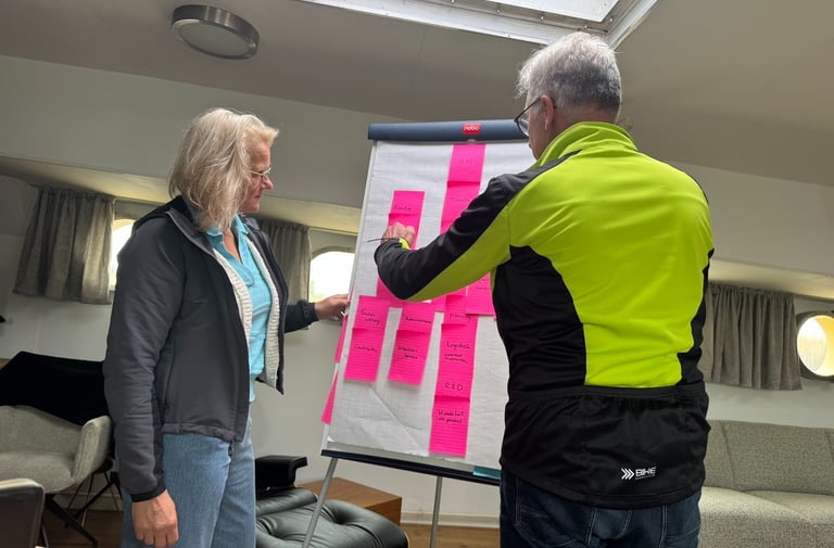 Investeren in betere samenwerking door letterlijk afstand te nemen van de werkvloer. De context van het schip maakt groepsdynamiek en besluitvorming direct zichtbaar en bespreekbaar.