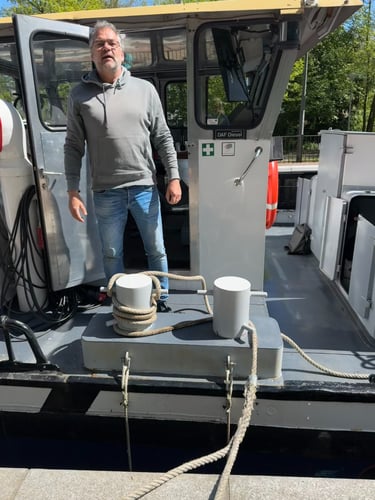 (30+ jaar ervaring als kapitein en docent binnenvaartkunde). De massa van de 38-meter lange Libertas dwingt tot vooruitdenken en absolute beheersing.
