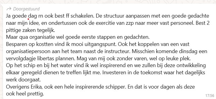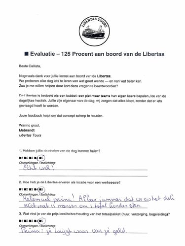 "Review personal coaching aan boord van de Libertas"
